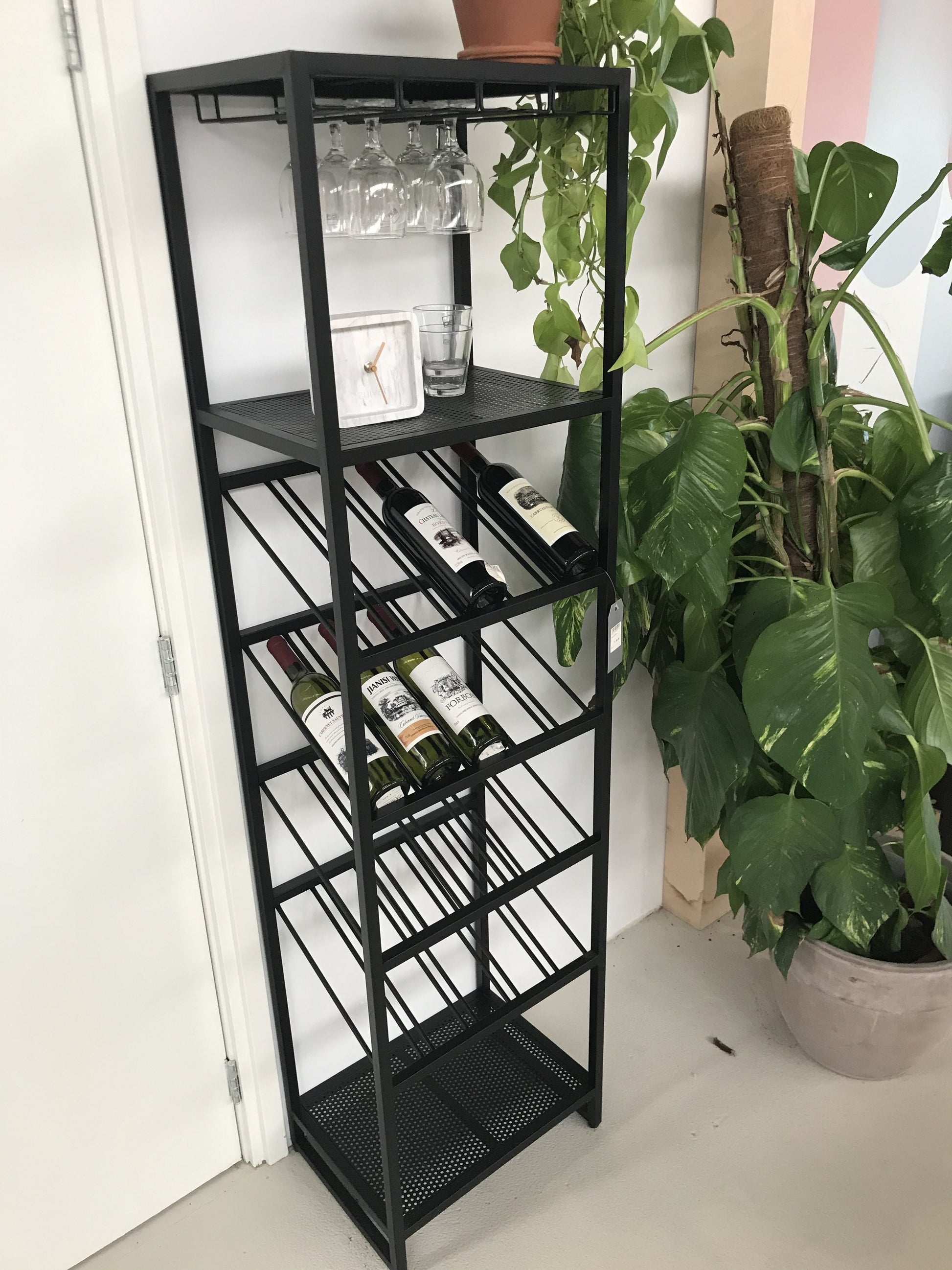 Su diseño mural optimiza el espacio y aporta un estilo moderno, industrial y minimalista, ideal para living, comedor, quincho o zona de bar. Gracias a su estructura robusta, permite almacenar múltiples botellas de vino de forma segura, manteniéndolas siempre a mano y correctamente posicionadas.